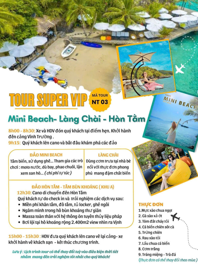 TOUR 3 ĐẢO: MINI BEACH – LÀNG CHÀI – HÒN TẰM